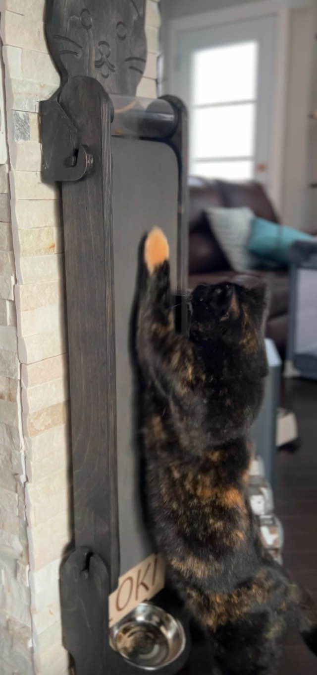 Ce système innovant se compose d'un tapis roulant vertical installé sur un mur, équipé d'un réservoir au sommet. Lorsque votre chat active le tapis en griffant ou en grimpant, il se met en mouvement, actionnant le réservoir qui libère de petites quantités de nourriture sèche. Celle-ci tombe alors dans un bol situé au bas du tapis roulant, offrant à votre chat une récompense interactive et stimulante.