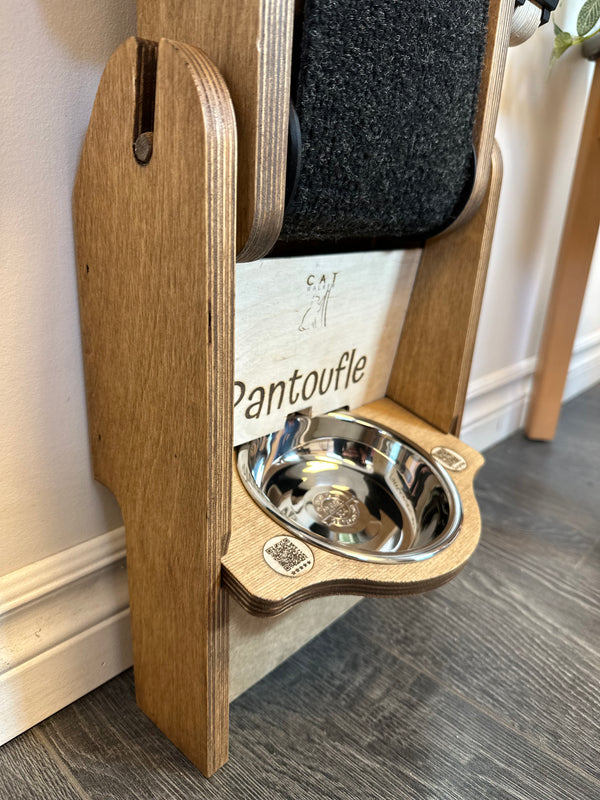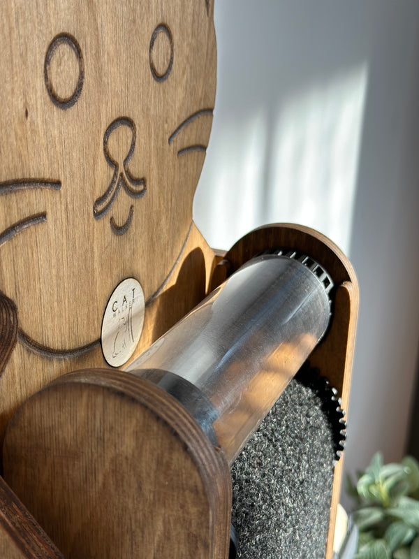 Les croquettes tombent dans le bol lorsque le chat fait tourner le tapis. Une récompense pour chaque effort.