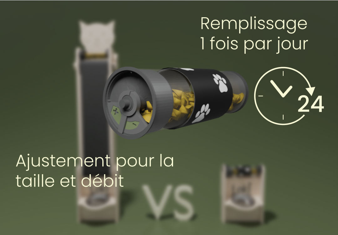 âïž GrĂące Ă lâajustement de la taille et du dĂ©bit, tu contrĂŽles facilement la vitesse de sortie et tu tâadaptes aux diffĂ©rentes grosseurs de croquettes.